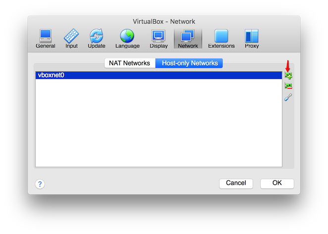 virtualbox -> preferences -> Networks -> Host-only Networks -> 添加 -> 生成 vboxnet0;主要过程如图所示