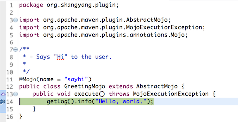 $ mvn org.shangyang.plugin:hello-maven-plugin:sayhi