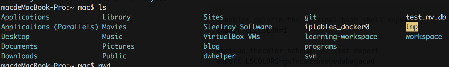 export LSCOLORS=gxfxcxdxbxegedabagacad
