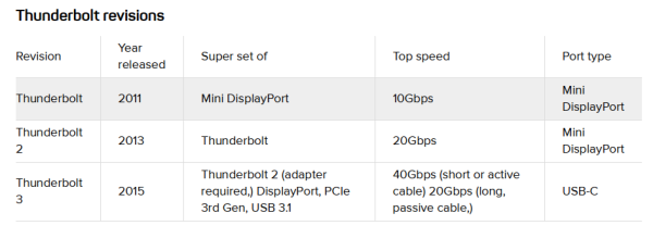 可见, Thunderbolt 2 以及 Thunderbolt 1 使用的接口型号是 Mini DP,所以,可以认为,两个其实就是同一个东西。