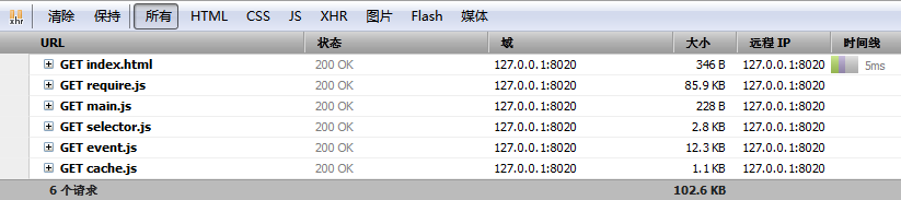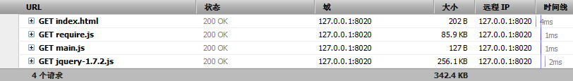 可以看到require.js正确的加载了 main.js 的所有相关的依赖包。